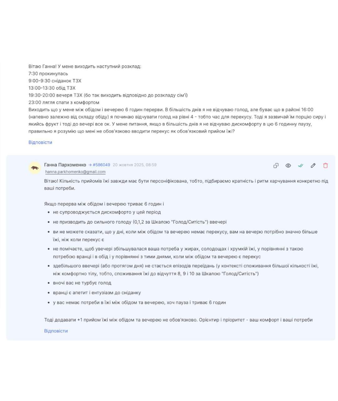 — Допомога у налагодженні раціонального харчування з урахуванням ваших потреб, індивідуальних особливостей та запитів